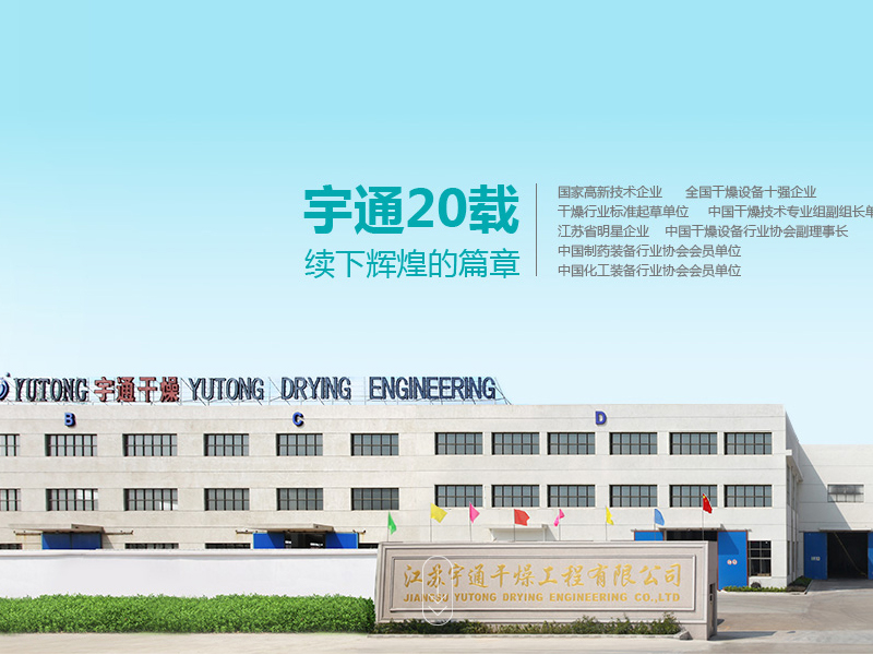江苏宇通干燥工程有限公司成立于2000年,是在原常州市宇通干燥设备有限公司的基础上,重新整合、增资扩建、规范管理、规模扩产、全面升级而更名的企业。经过16年的发展,公司无论是企业规模、生产装备、设计水...